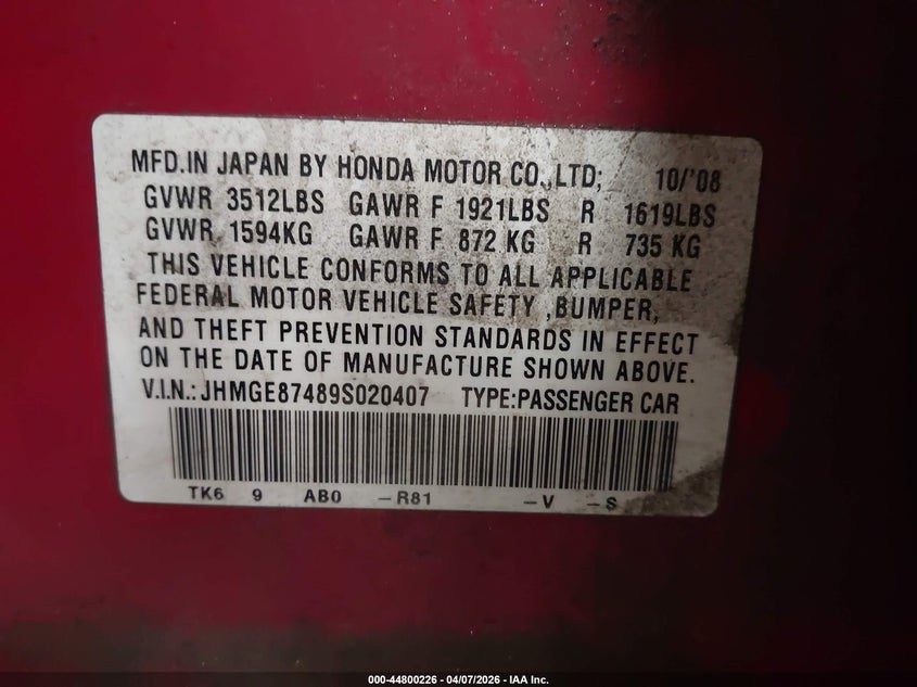 JHMGE87489S020407