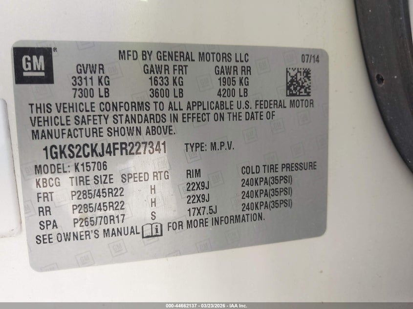 1GKS2CKJ4FR227341