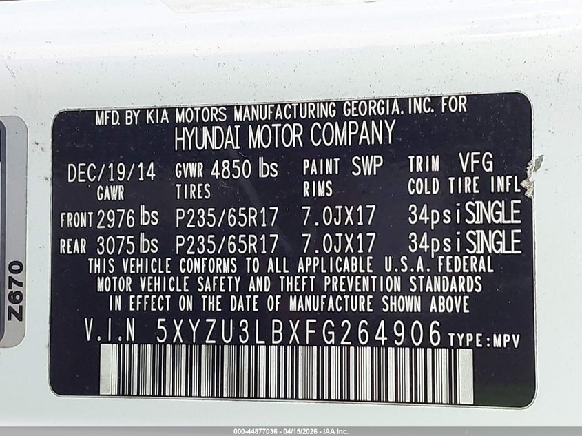 5XYZU3LBXFG264906