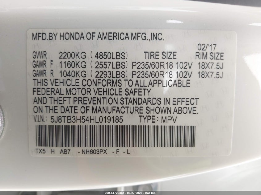 5J8TB3H54HL019185