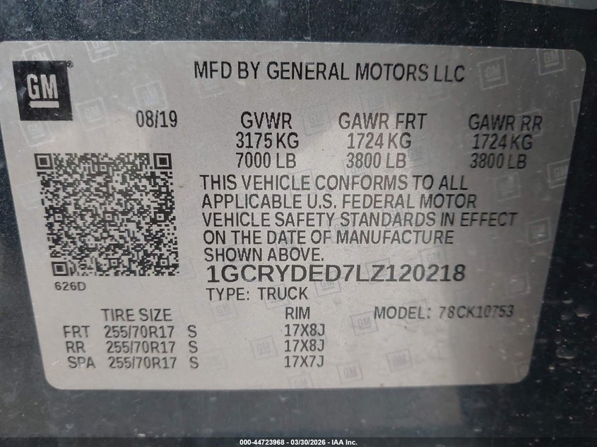 1GCRYDED7LZ120218
