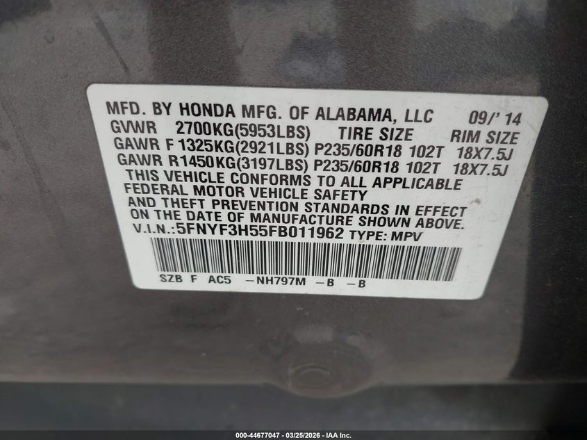5FNYF3H55FB011962